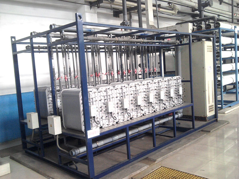 EDI,又稱連續電解除鹽技術,它科學地將電滲析技術和離子交換技術融為一體,通過陰、陽離子的選擇透過作用以及離子交換樹脂對水中離子的交換作用,在電場的作用下實現水中離子的定向遷移,從而達到水的深度凈化除鹽,并通過水電解產生的氫離子和氫氧根離子對裝填樹脂進行連續再生,因此EDI制水過程不需酸、堿化學藥品再生即可連續制取高品質超純水,它具有技術先進、結構緊湊、操作簡便的優點,可廣泛應用于電力、電子、醫藥、化工、食品和實驗室領域,是水處理技術的綠色革命。