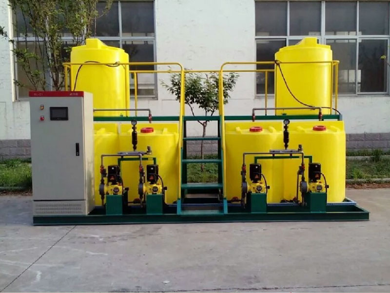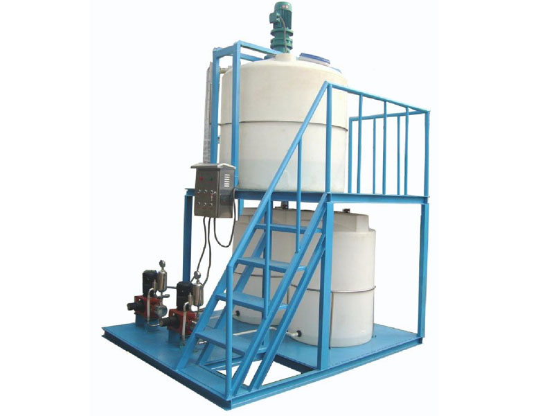 加藥裝置通過不同的工藝設計,精確配置各類固體和液體的化學藥品的溶液,再用計量泵準確投加,以達到各種設計要求。如除垢、除氧、混凝、加酸、加堿等。